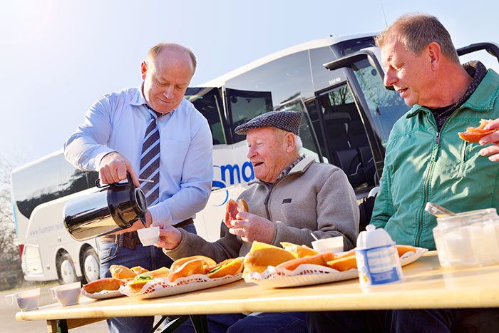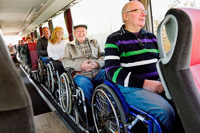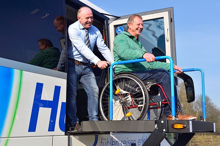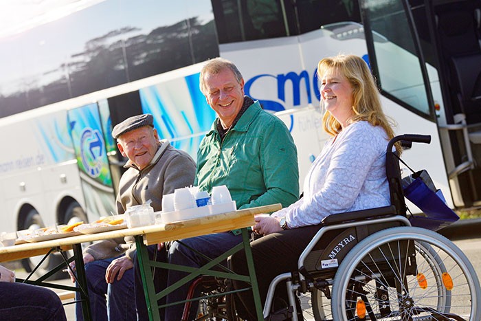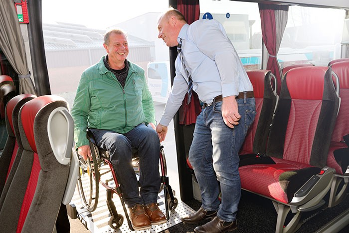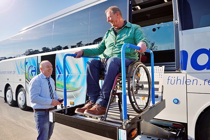 Natürlich sind alle dabei: Endlich ist Reisen in gemischten Gruppen problemlos möglich, Fußgänger und Rollstuhlfahrer können gemeinsam auf Erkundungstour gehen und Ausflüge unternehmen. Dabei gehören Trennungen der Gruppe der Vergangenheit an, die Gruppe reist zusammen entspannt an und kommt auch zur gleichen Zeit ans Ziel. Mit allen Annehmlichkeiten, die ein moderner Reisebus bietet.