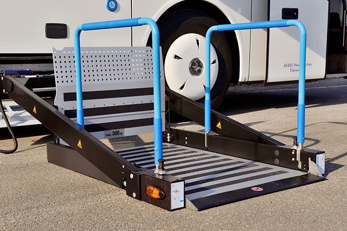 Die Besonderheit ist die sehr stabile Rampe mit der das Ein- und Aussteigen sogar Spaß macht und ein gutes Gefühl vermittelt - nichts wackelt. Sie werden ganz bequem über die Fernbedienung mit Hilfe des Fahrers hochgefahren. Über die Rampe kommt jeder spielend leicht zu seinem Platz.