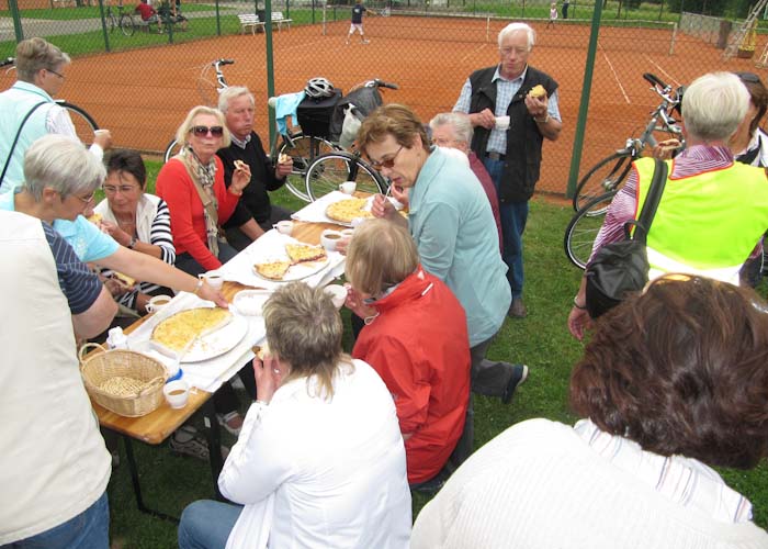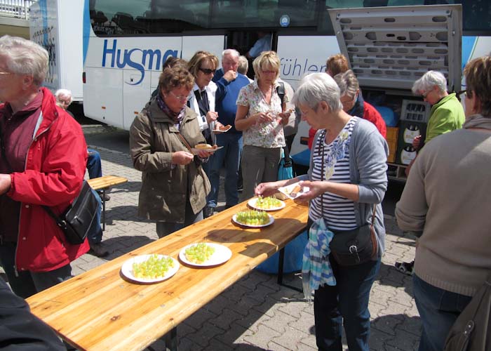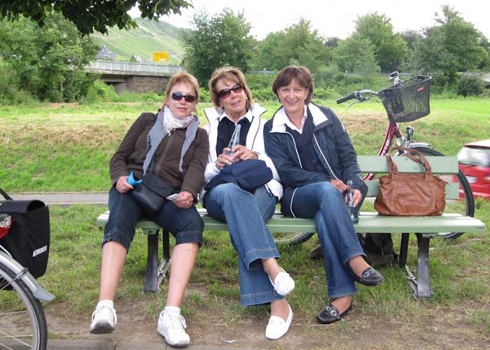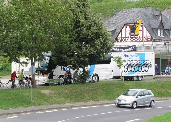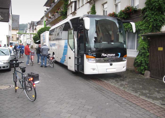 In gemütlichen Etappen ging es am zweiten Tag der Radreise entlang der Mosel flussabwärts, mit Pausen in Bernkastel und Enkirch, nach Alf zu unserem Quartier. Zur Stärkung gab es frischen Kuchen, Kaffee und kalte Getränke am Bus.